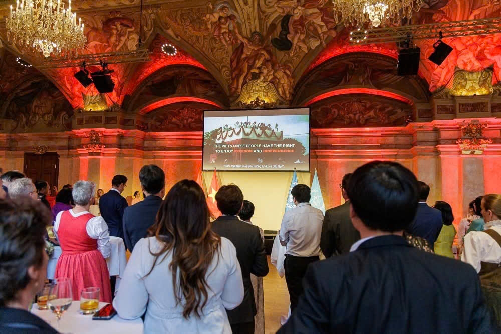 The ceremony began with a solemn flag-raising accompanied by the powerful and emotional national anthem performed by the Vietnamese-Austrian youth choir. It featured documentary footage of President Ho Chi Minh reading the Declaration of Independence on September 2, 1945, and highlighted the 80-year journey of defending and building the nation, marked by renewal, integration, and proud development.