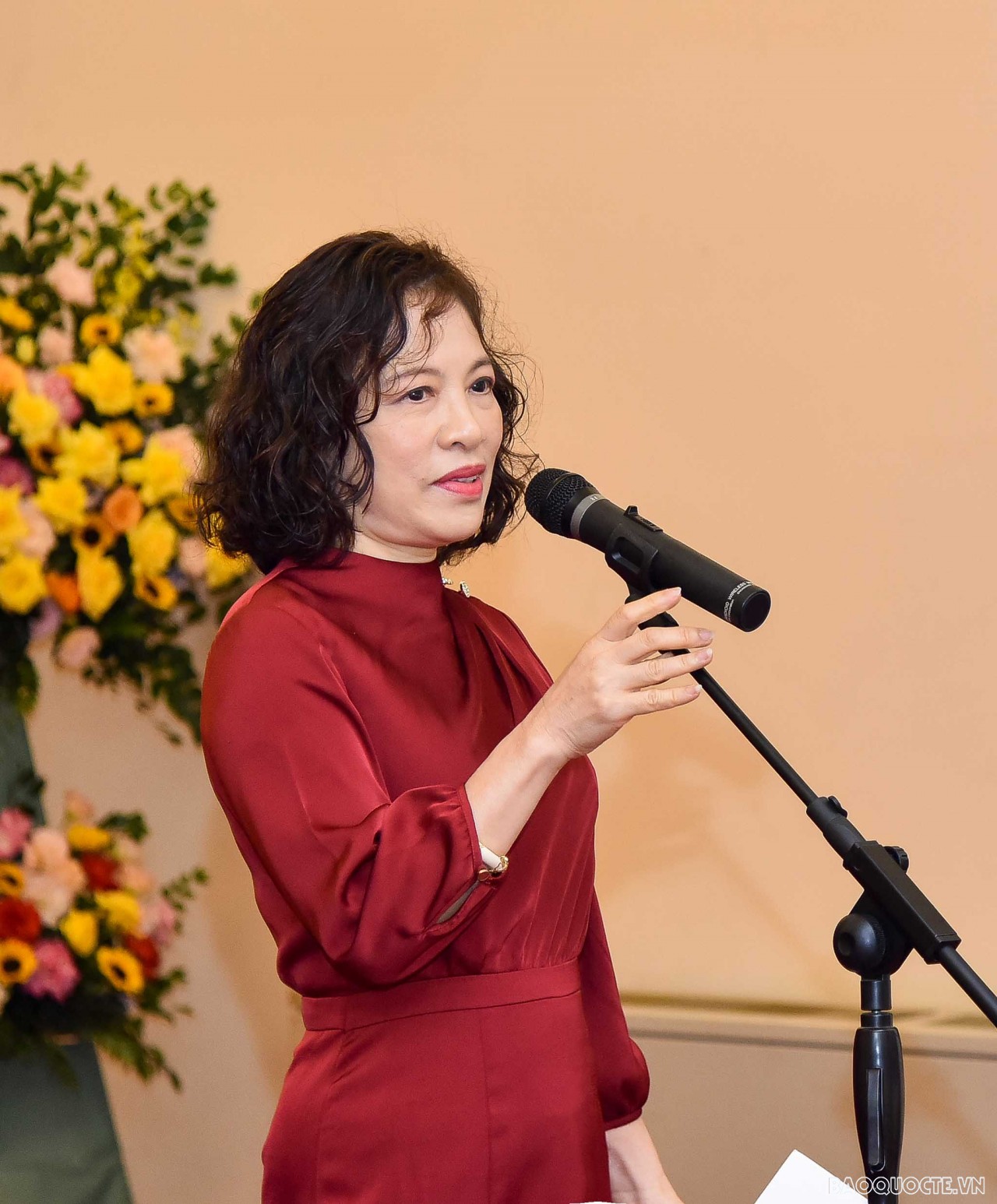 | Honorary President of the AWCH and Spouse of Foreign Minister Vu Thi Bich Ngoc spoke at the meeting. (Photo: Nguyen Hong) |