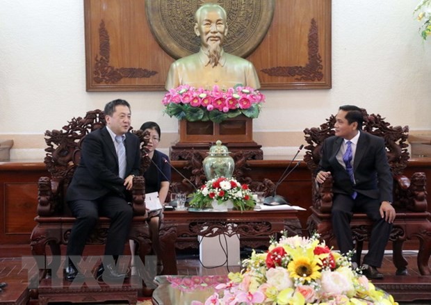 | Deputy Chairman of the People’s Committee of Can Tho Nguyen Van Hong (R) receives JICA Chief Representative Shimizu Akira. (Photo:VNA) |