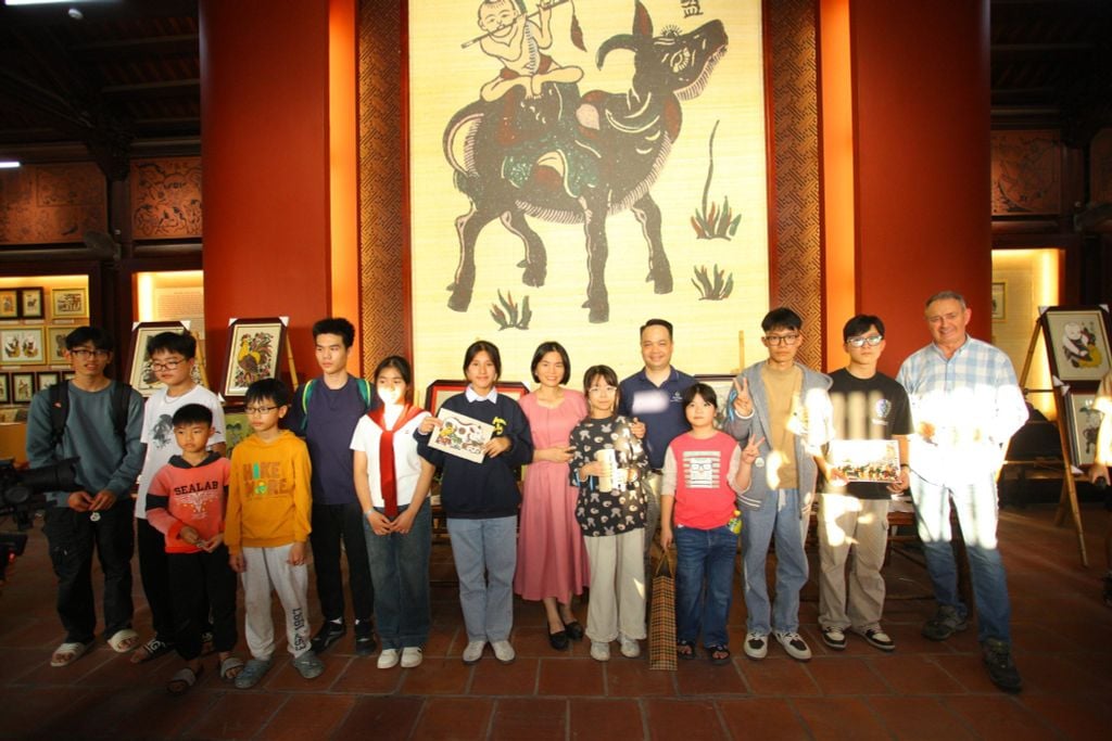 Students directly experienced printing folk paintings, gaining an understanding of the natural materials and colours, as well as the rustic beauty of this renowned traditional craft.