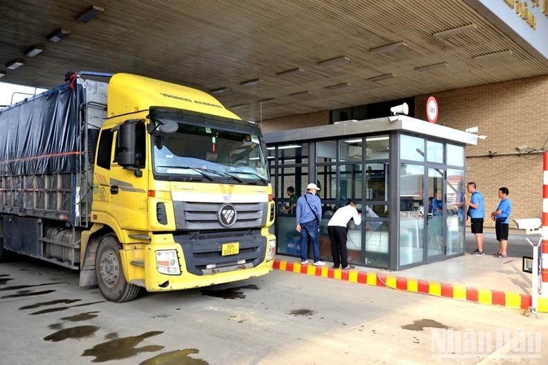 | The Management Board has arranged the shortest and most convenient lanes for trucks carrying fresh lychee to enter the border gate. (Photo: NDO) |