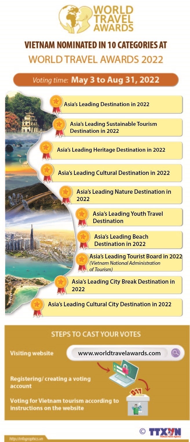 Vietnam has made an impressive comeback with ten nominated categories at the World Travel Awards 2022, according to the Vietnam National Administration of Tourism (VNAT).