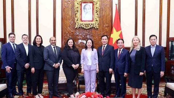 | Vietnam - Russia Tropical Centre celebrates 35th anniversary of Traditional Day: Vice President Vo Thi Anh Xuan greets leaders of the Vietnam - Russia Tropical Centre before attending the ceremony on March 7, 2023. (Photo: VNA) |